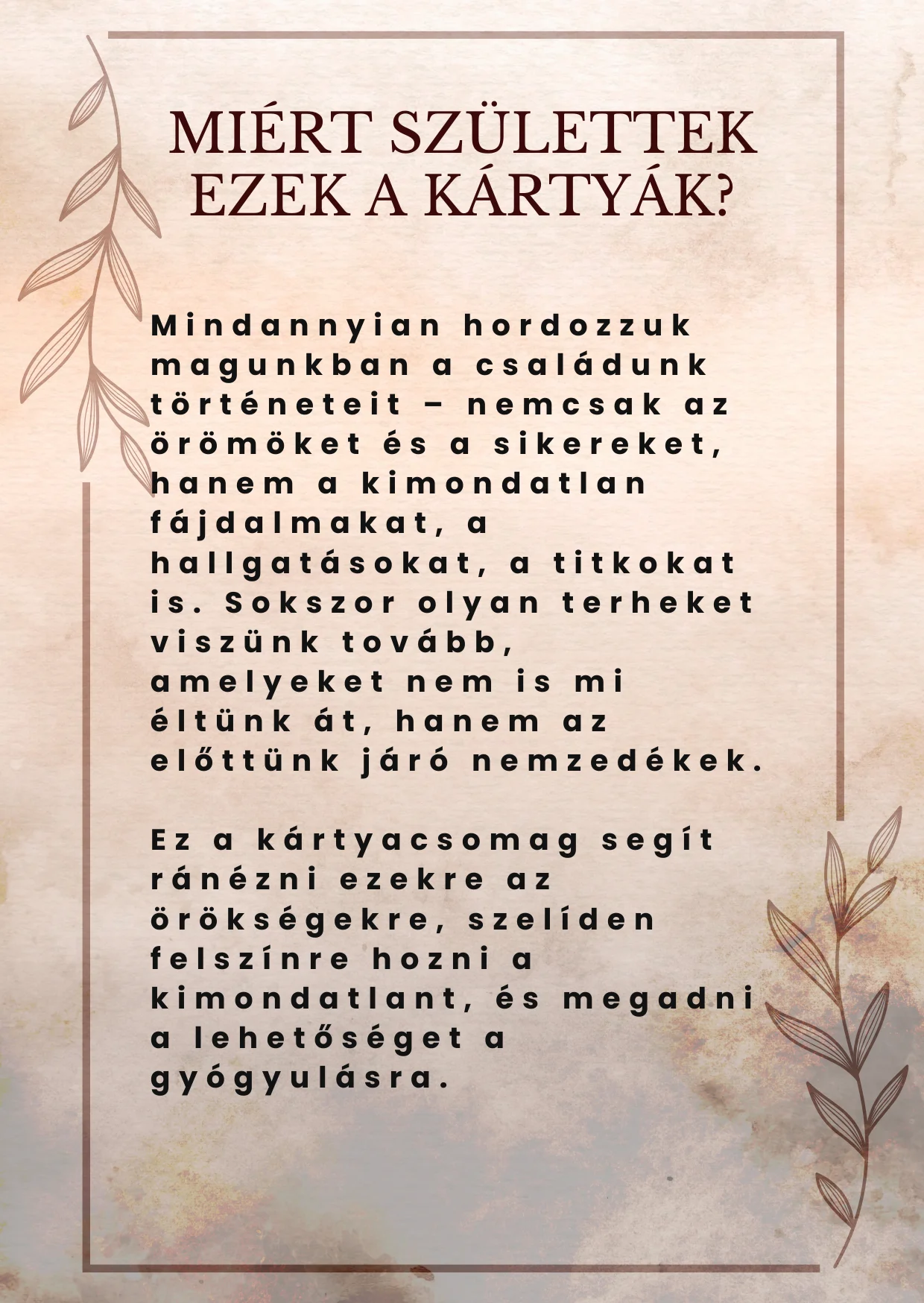 Használd naponta, naplóíráshoz, meditációhoz vagy családi örökségeid tudatosításához – és add meg magadnak azt a szabadságot, amit az elődeid talán nem élhettek meg.