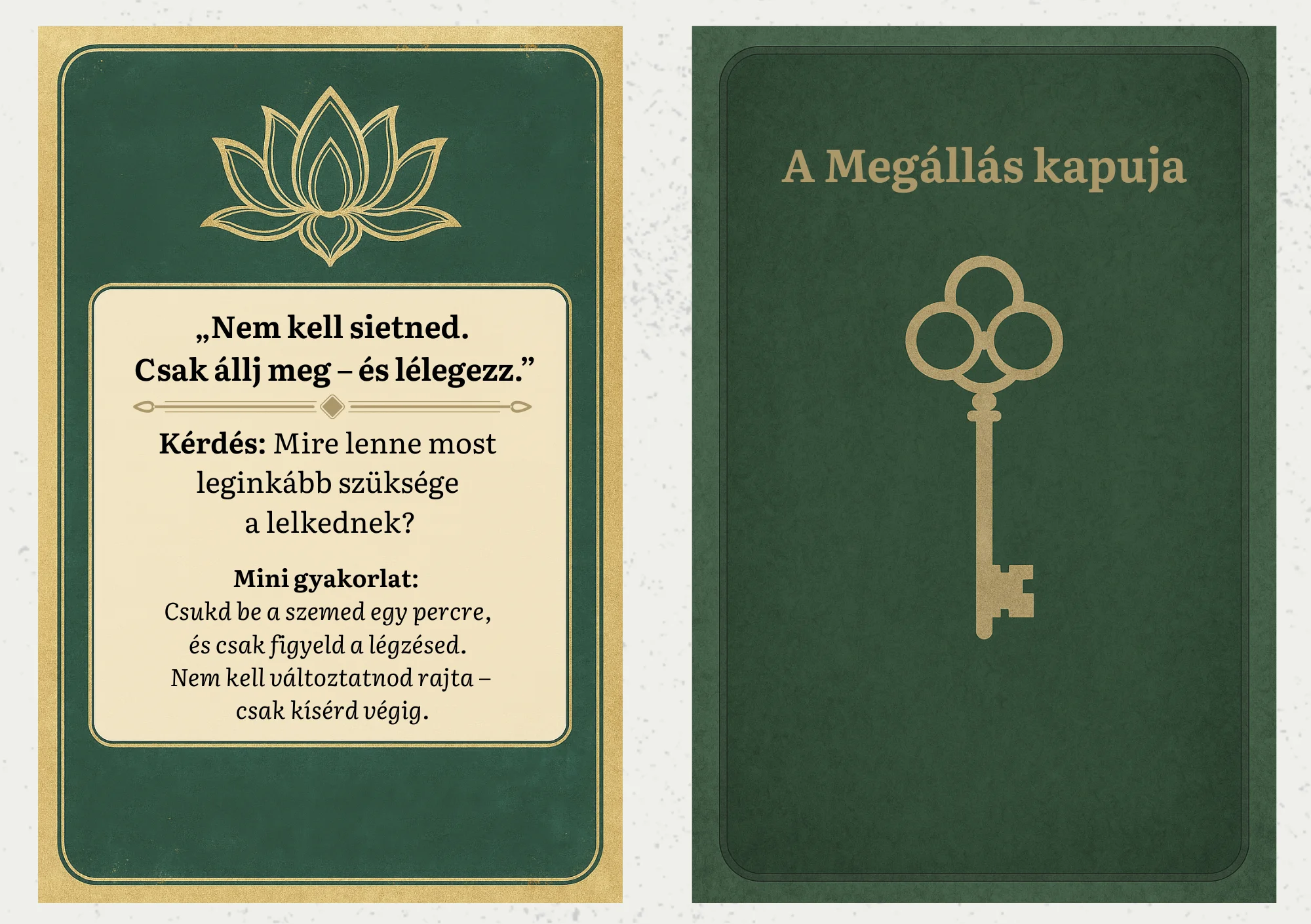 Minden kártyán található egy idézet, egy kérdés és egy rövid gyakorlat – hogy segítsen lelassulni, megérkezni, és mélyebben kapcsolódni önmagadhoz.