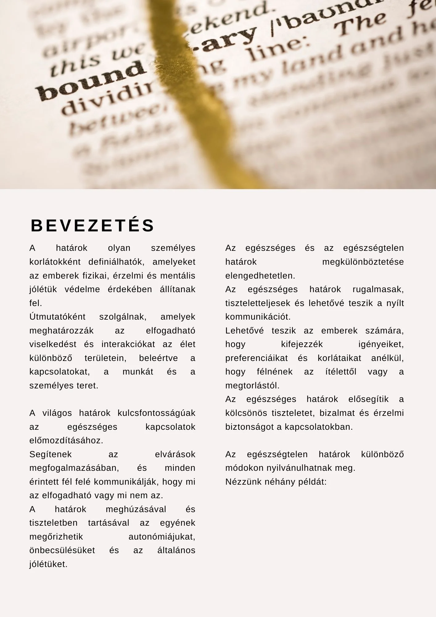 A határok személyes korlátok, amelyek meghatározzák, hogy mit vagyunk hajlandók elfogadni és mit nem.