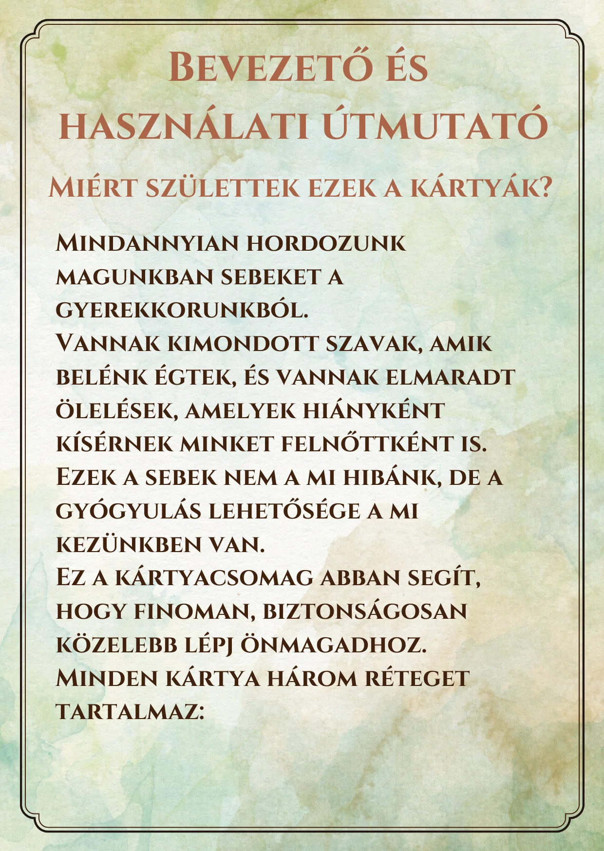 Használhatod őket reggeli útravalóként, naplóíráshoz, meditációhoz vagy terápiás önmunkához.